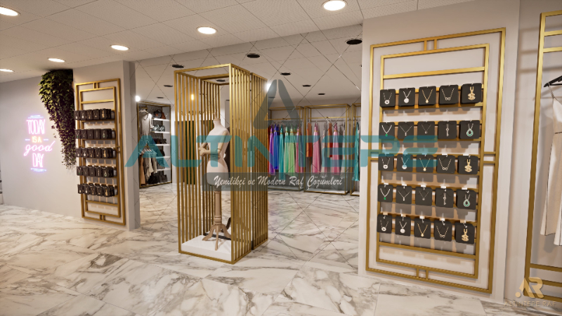Butik mağazalar için tasarladığımız raf sistemleri, zarafeti ve işlevselliği bir araya getiriyor. Moda ve tasarımın bir araya geldiği bu raflar, ürünlerinizi etkileyici bir şekilde sergileyerek müşterilerinizin dikkatini çeker. Raflarımız, mağazanızın genel dekorasyonuna uyum sağlayacak şekilde özelleştirilebilir ve mağaza alanınızı en iyi şekilde kullanmanıza olanak tanır. İster giyim, ister aksesuar veya ayakkabı satışı yapıyor olun, her tür ürüne uygun çözümlerimizle mağazanızın estetik standartlarını yükseltiyoruz. Müşteri deneyimini iyileştirirken, alışveriş sürecini daha keyifli hale getiren butik çözümlerimizle tanışın.
